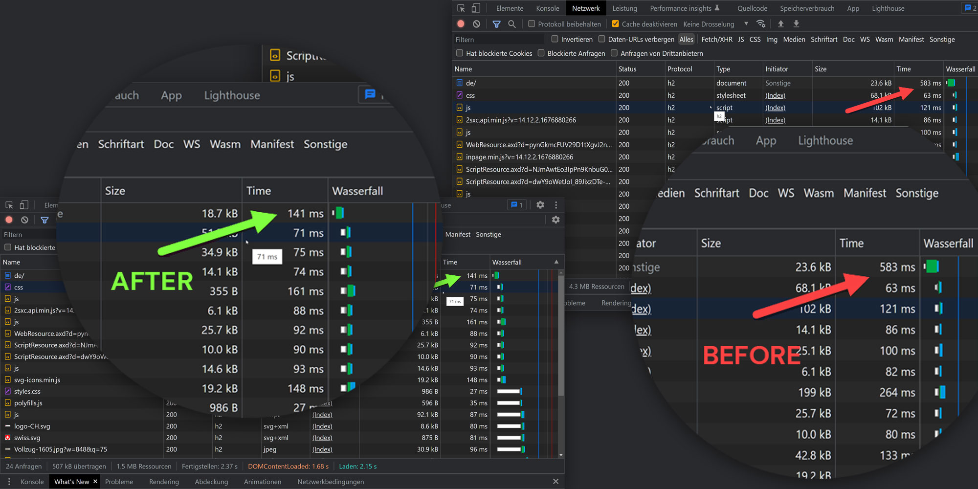 Nach vertiefter Analyse entschieden wir, das Plugin LightSpeed einzusetzen. Schon nach wenigen Stunden Lernzeit konnte der Server zehn bis zwölfmal schneller arbeiten. Fast alle Seiten werden nun in weniger als einer Zehntelsekunde ausgeliefert. Die Anwender haben nun ein viel besseres Erlebnis, und der Server kann bei gleichbleibenden Ressourcen die zehnfache Besucherlast mit Leichtigkeit bezwingen. Ein toller Erfolg für unseren Kunden.