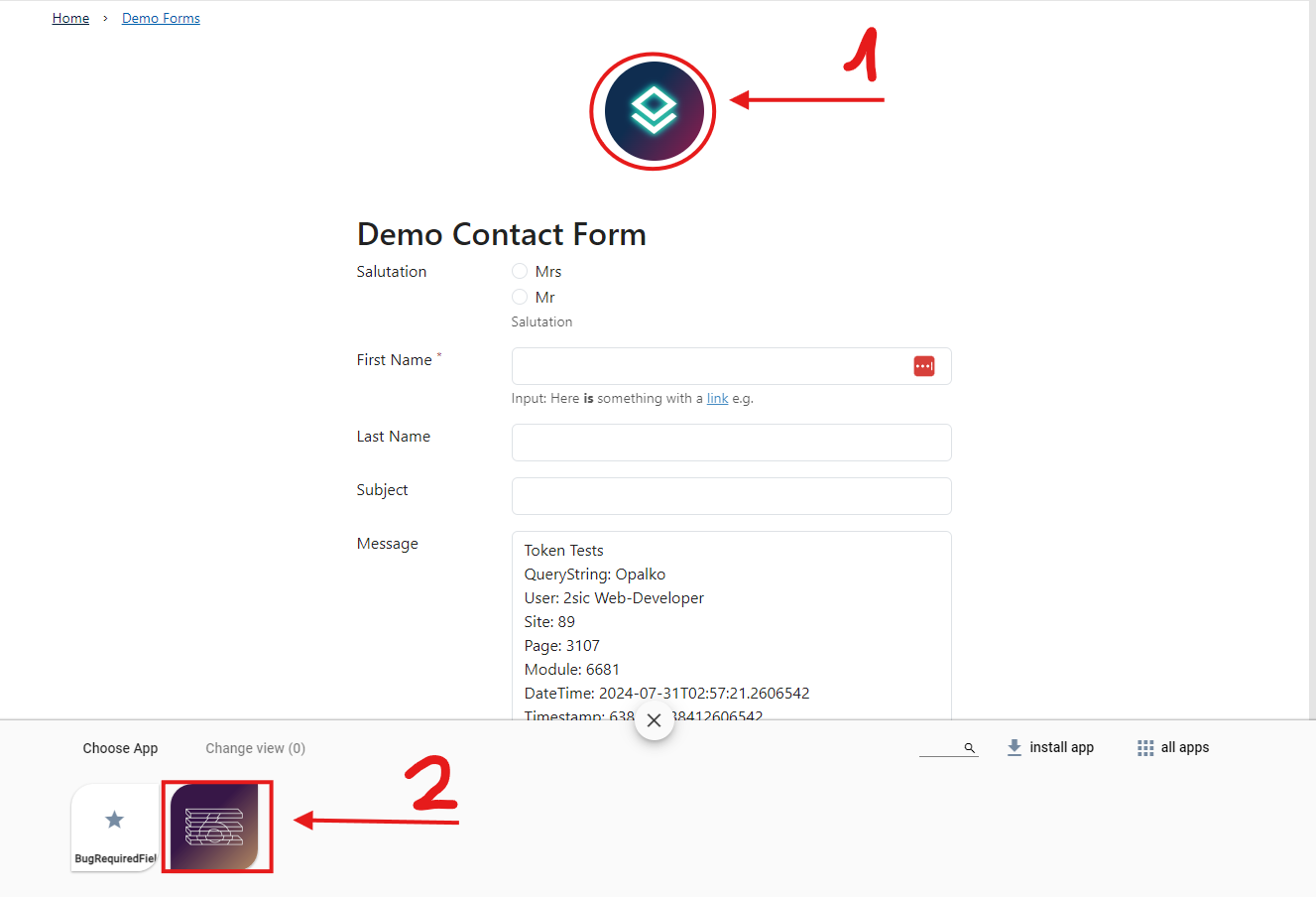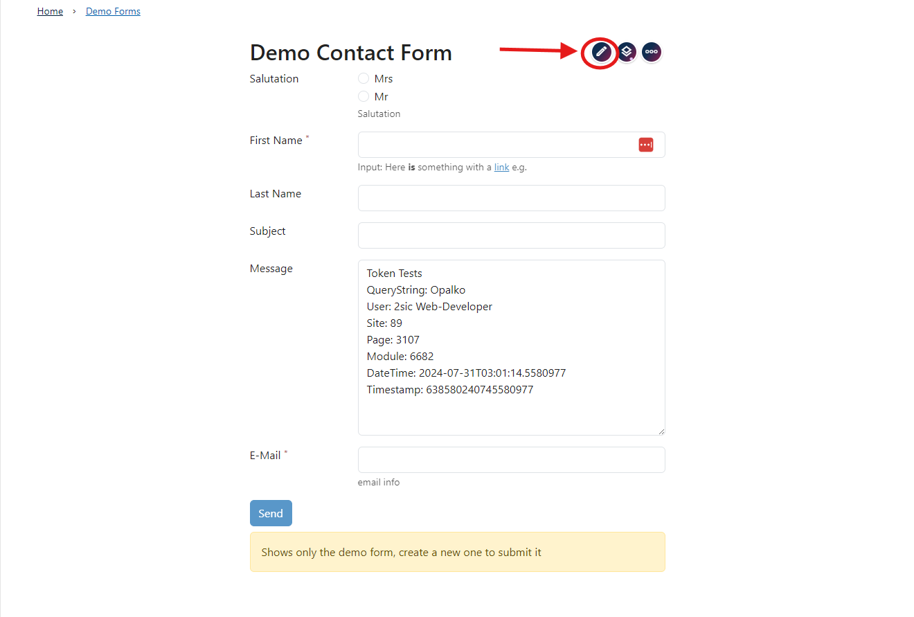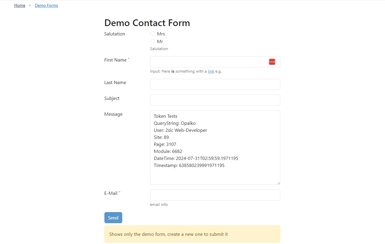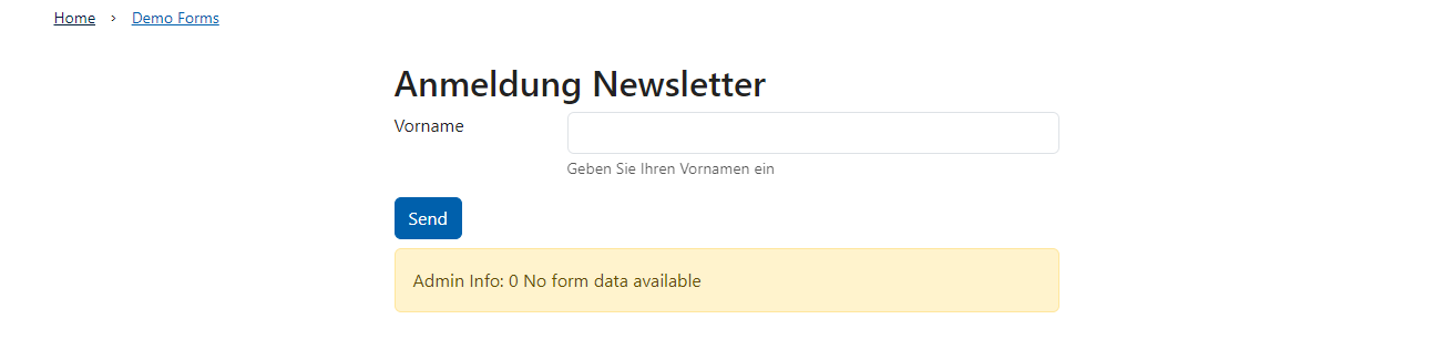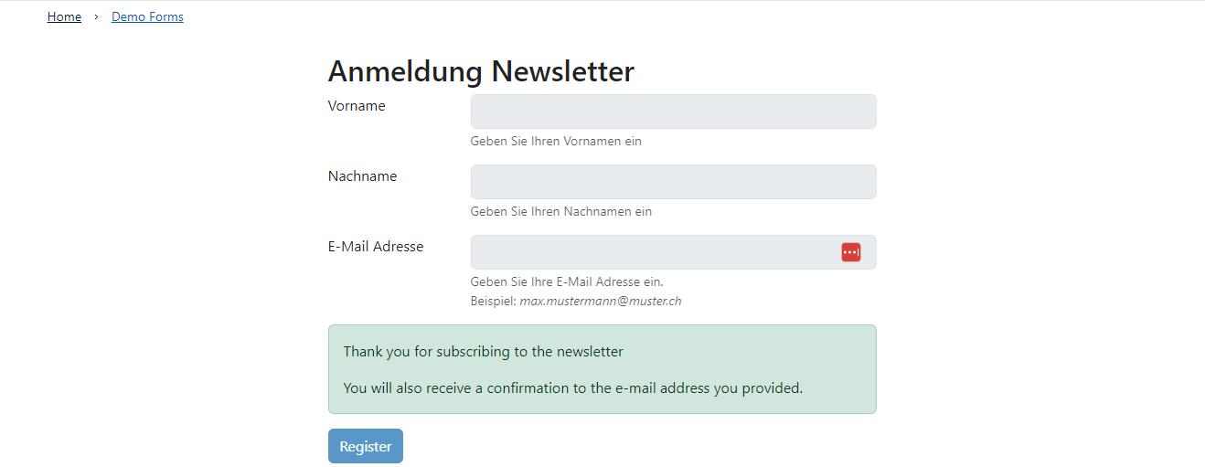 2. Nachdem du die App ausgewählt hast wird ein Demo-Formular auf deiner Seite dargestellt. Sobald du mit der Konfiguration deines Formulars beginnst verschwindet dieses und es wird dein erstelltes Formular gezeigt.