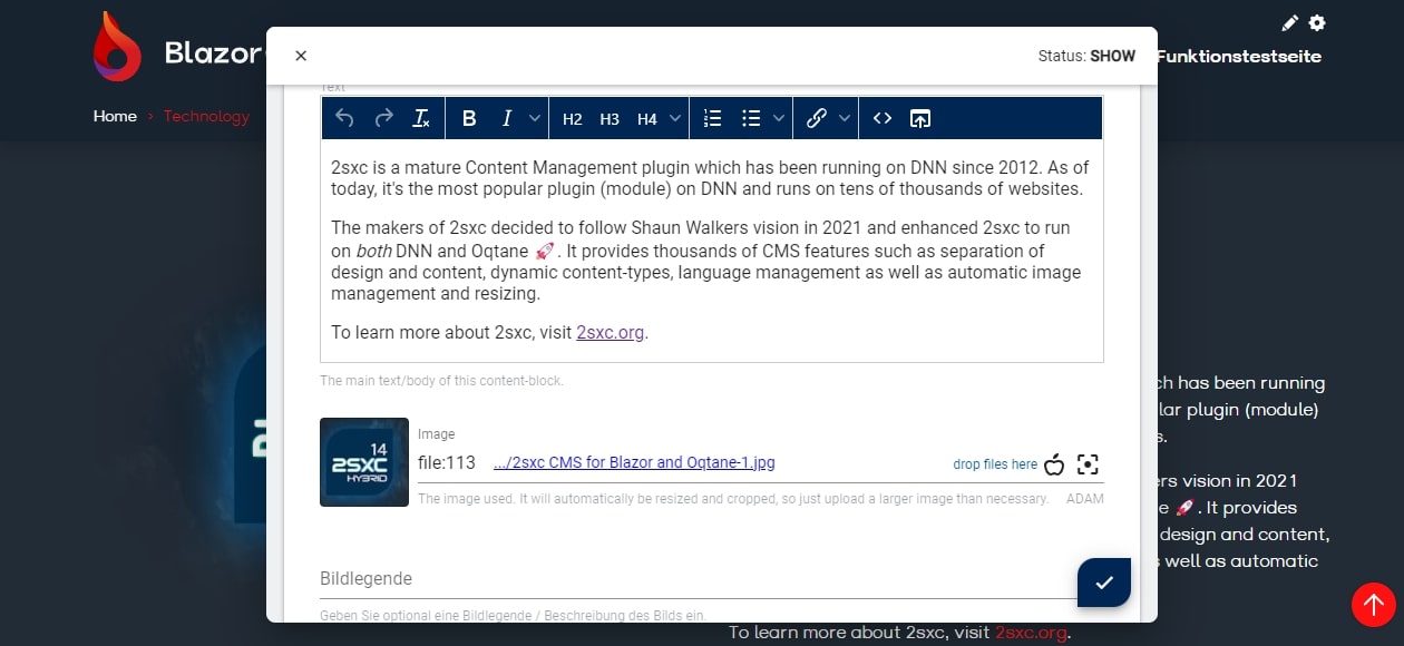 Alle unsere 2sxc Apps wurden hybrid gemacht, um in DNN und Oqtane im Mai 2022 zu laufen. Die aktuelle Seite zeigt bereits verschiedene Apps wie die Image Slider App, Mobius Forms (für die Newsletter-Anmeldung) und Accordion