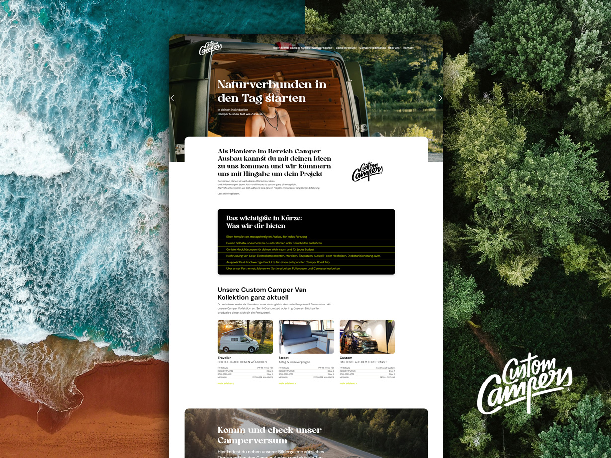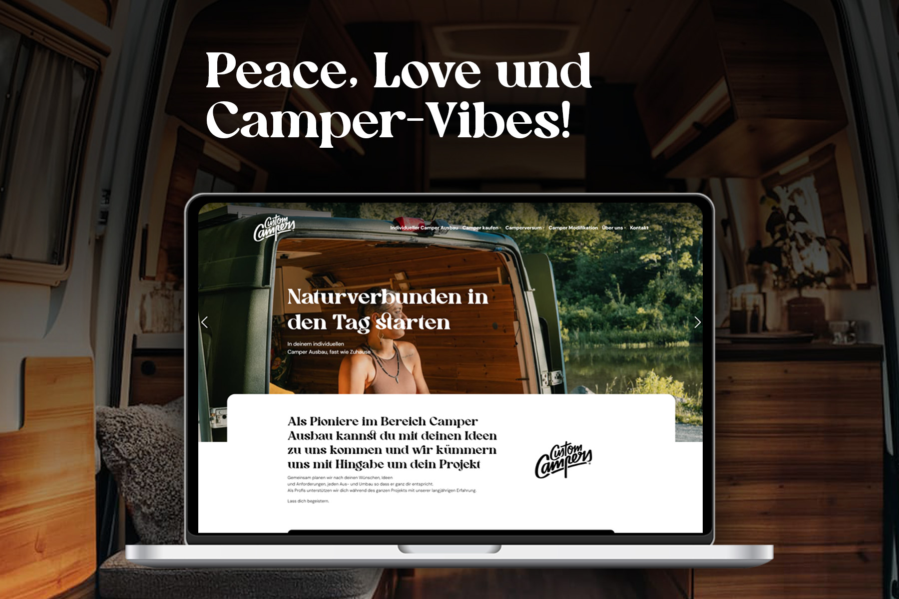 Custom Webdesign: Wir haben ein individuelles Webdesign entwickelt, das nicht nur optisch ansprechend ist, sondern die einzigartige Identität von Custom Campers perfekt widerspiegelt und die Nutzer emotional anspricht.