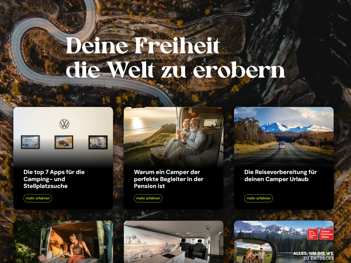 Ein weiteres Highlight der neuen Seite ist der umfangreiche Blog, der regelmässig mit neuen Artikeln gefüllt wird. Von praktischen Camping-Tipps über Reiseberichte bis hin zu detaillierten Anleitungen zur Camper-Ausstattung – der Blog bringt Mehrwert und stärkt die Kundenbindung. Er dient nicht nur als Informationsquelle, sondern auch als Inspirationsquelle für zukünftige Abenteuer auf vier Rädern.