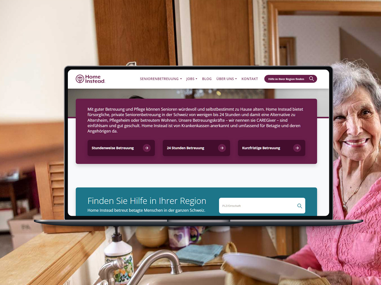 Noch kundenzentrierter in den einzelnen Schweizer Regionen erreichbar zu sein und die regionalen Kundengruppen optimal anzusprechen und zu betreuen. Der digitale Auftritt erhielt eine neue Struktur, Inhalte wurden aus Sicht des Kunden optimiert und in die bestehende Website integriert. So wurde nicht nur der Service für die Regionen verbessert, sondern dank der neuen Ausrichtung konnte auch die Auffindbarkeit in Suchmaschinen (SEO) stark optimiert werden. Zur Stärkung der regionalen Nutzerzentrierung von Home Instead haben wir gemeinsam, Bedürfnisse und Ziele der Kunden analysiert und den Fokus stärker auf die Regionen ausgerichtet.