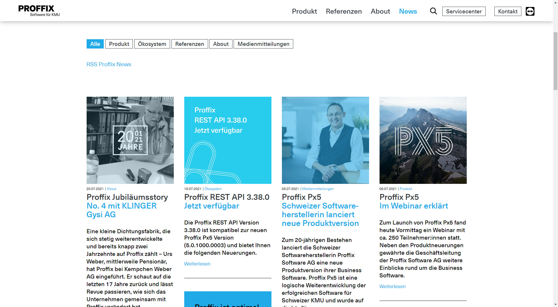 Zum 20-zigsten Jubiläum hat sich Peter Herger und sein Team einiges einfallen lassen. Eine neue Version der eigenen Software namens PX5 und mit neuem Webauftritt setzten Sie ein Zeichen. Modern, smart, digital – So präsentiert sich das neue Proffix Px5 und der zugehörige Webauftritt. In Zusammenarbeit mit Proffix und der Agentur Vademecum durften wir die Umsetzung nach Gestaltungsvorlage erstellen.