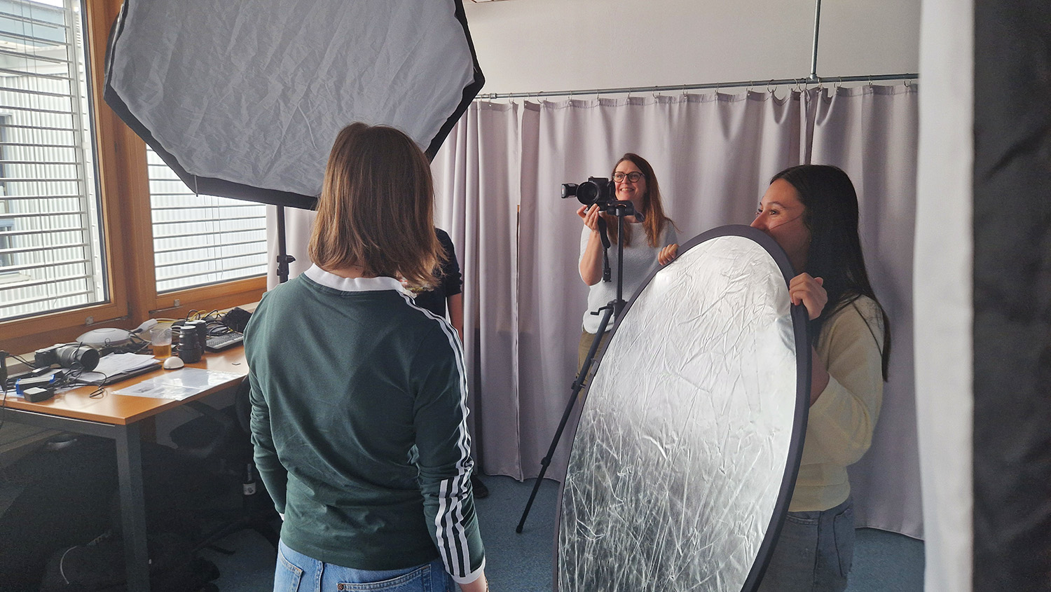 Der Tag startete typisch für Teenager – leise Begrüssung, neugierige, aber zurückhaltende Blicke. Doch sobald die ersten eigenen Websites befüllt, Portraitfotos geschossen und Designs gestaltet wurden, war das Eis gebrochen. Die Highlights des Tages und Zitate der Kids: