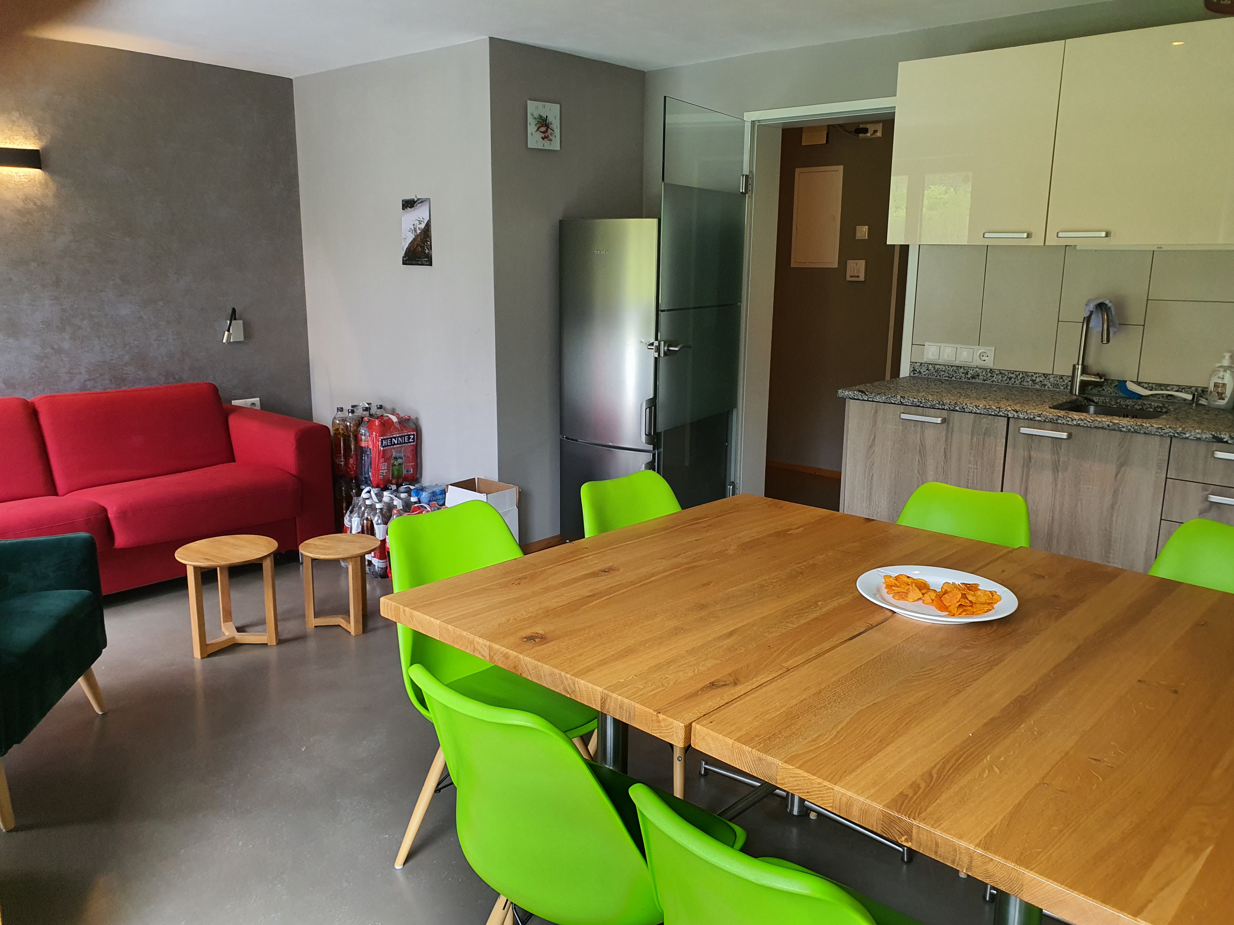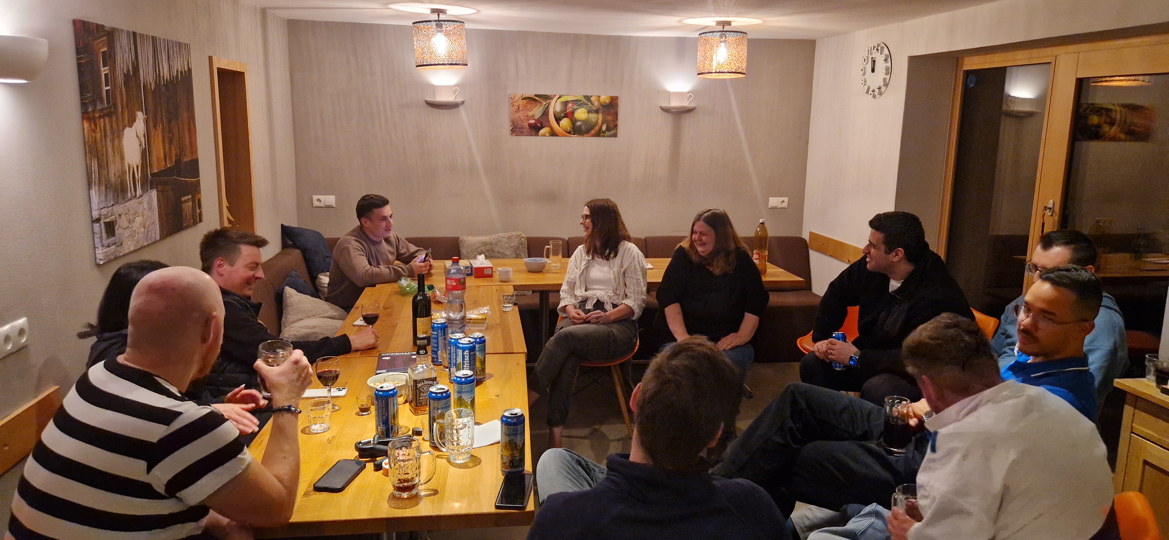 Nach der Ankunft ging’s erst mal gemütlich los – mit einer Flasche Wein, selbstgemischtem Moscow Mule und jeder Menge Gelächter. Statt in Business-Outfits zu stecken, fanden wir uns in Jogginganzügen wieder, mit einem Glas in der Hand und Gesprächen, die vom Büroalltag weit entfernt waren. Wir lernten uns auf eine ganz neue, lockere Art kennen
